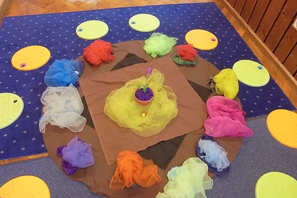 Zusammen spielen wir ein Kreisspiel, betrachten ein Bilderbuch, stimmen in einer Kinderkonferenz über etwas ab oder erfahren Spannendes zu aktuellen Themen (z. B. Sachthemen...)