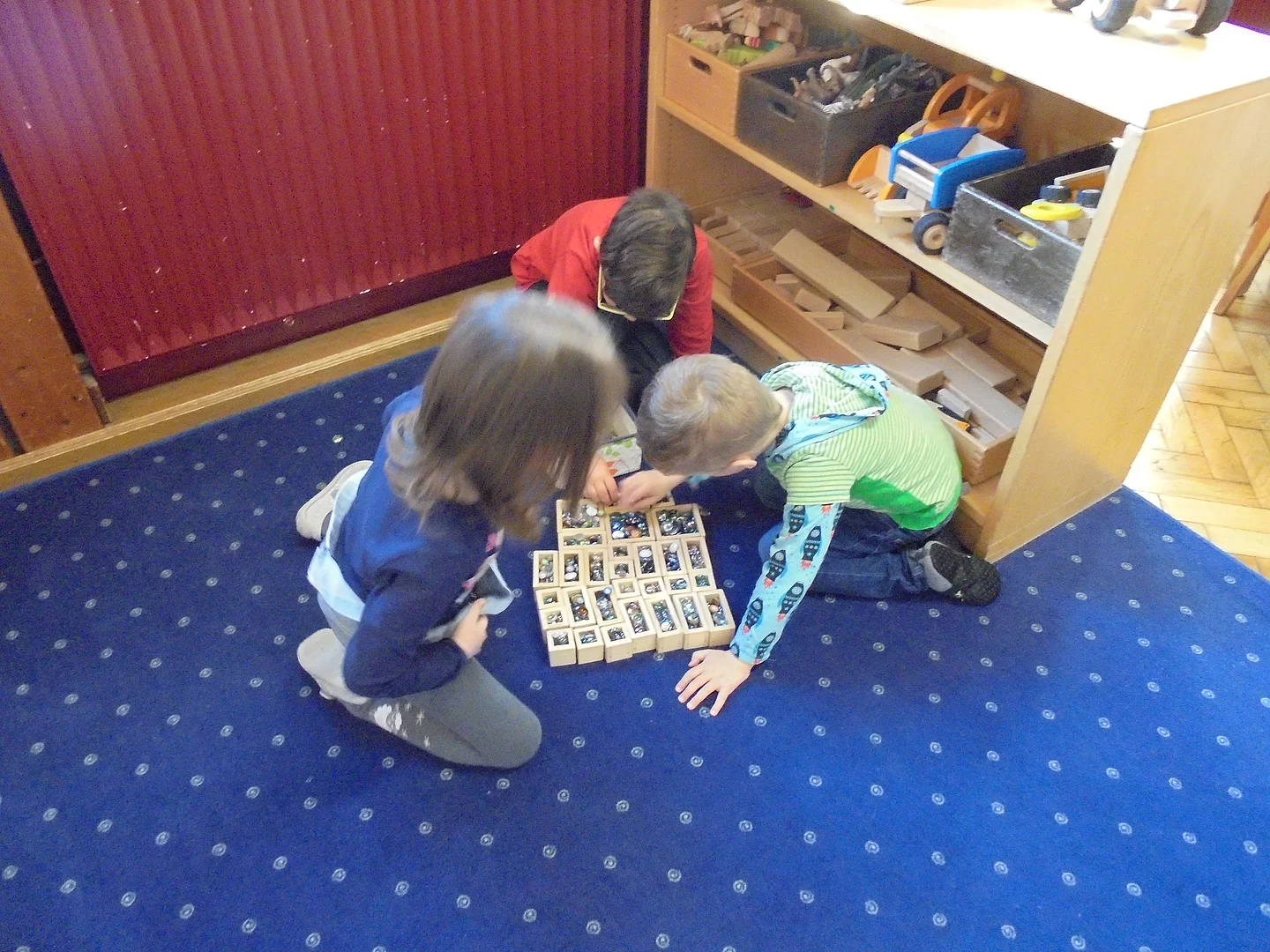 Hier finden die Kinder Zeit zum gemeinschaftlichen Spiel an Tisch und Ecken, kreativen Gestalten, Bücher lesen, Brotzeit machen, oder auch zur Teilnahme an gezielten Angeboten in der Kleingruppe. Die Freispielzeit ist für die Kinder die wichtigste Lern- und Erfahrungsmöglichkeit.
